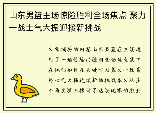山东男篮在主场进行了一场惊险的胜利,全场焦点集中在他们如何在关键时刻聚力一致,最终士气大振迎接新的挑战。本文从多个角度深入探讨了这场比赛的胜利过程和其背后的意义,包括战术调整、关键球员表现、球队心态和未来挑战的应对策略。